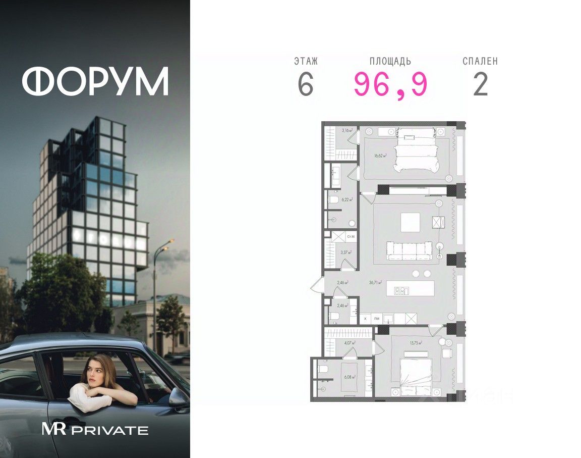 Продаётся 2-комнатная квартира общей площадью 96.90 м² в клубном доме Форум.