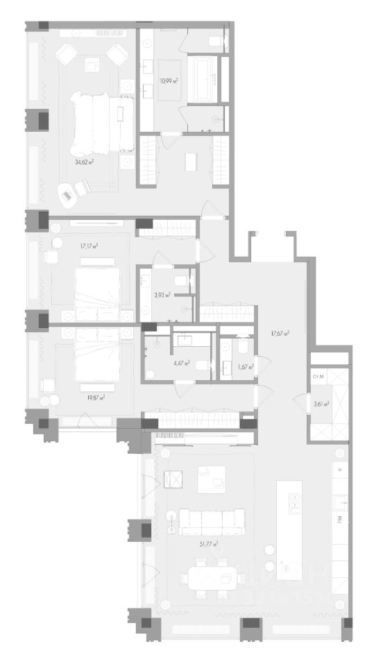 Продаётся 3-комнатная квартира от застройщика MR Private в клубном доме FORUM.