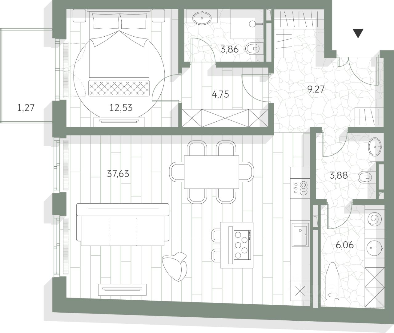 1-комнатная квартира общей площадью 79.25 м² в фамильном доме LUCE, расположенная на 5 этаже 7-этажного дома.