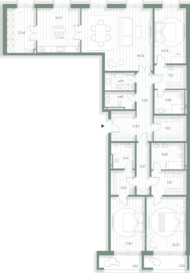 3-комнатная квартира общей площадью 211.70 м² в фамильном доме LUCE, расположенная на 2 этаже 7-этажного дома.