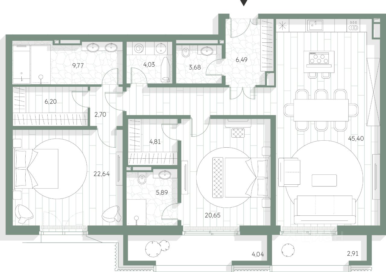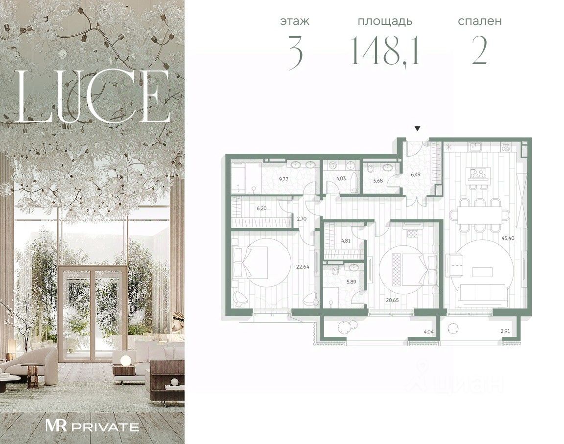2-комнатная квартира общей площадью 148.10 м² в фамильном доме LUCE, расположенная на 3 этаже 7-этажного дома.