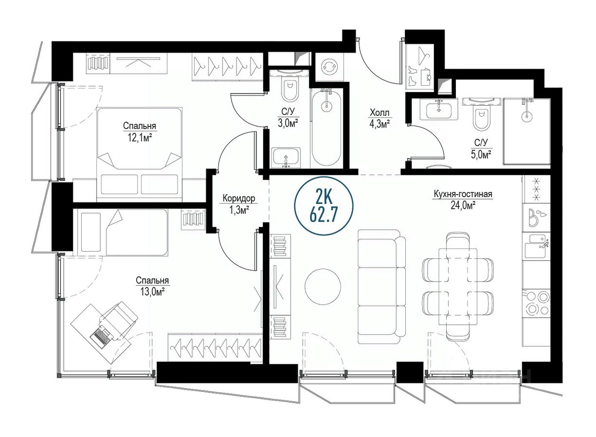Продаётся 2-комнатная квартира общей площадью 61.80 м², на 4 этаже.