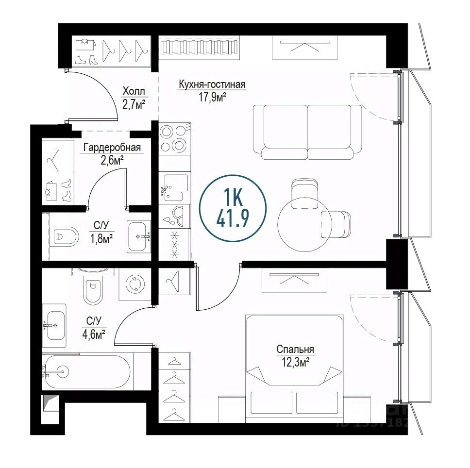Продаётся 1-комнатная квартира общей площадью 41.50 м², на 24 этаже.