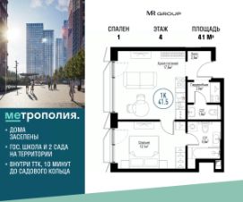 Продаётся 1-к квартира общей площадью 41 м², на 4 этаже.