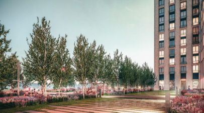 Высотные здания "Метрополии" образуют благоустроенное дворовое пространство на 4,6 га, которое украсят более 400 деревьев и несколько сотен кустарников, живописные цветочные клумбы и аккуратные газоны.