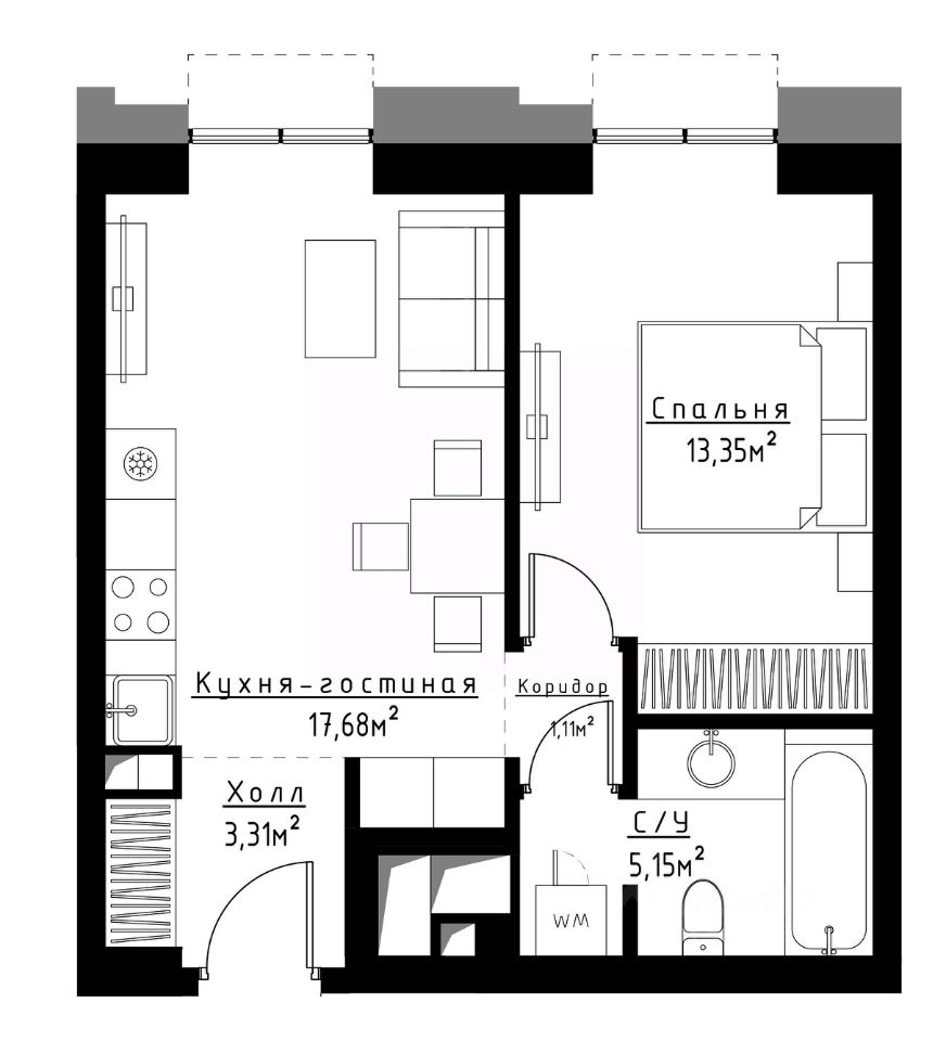 Продаётся 1-комнатная квартира общей площадью 41.30 м², на 15 этаже.