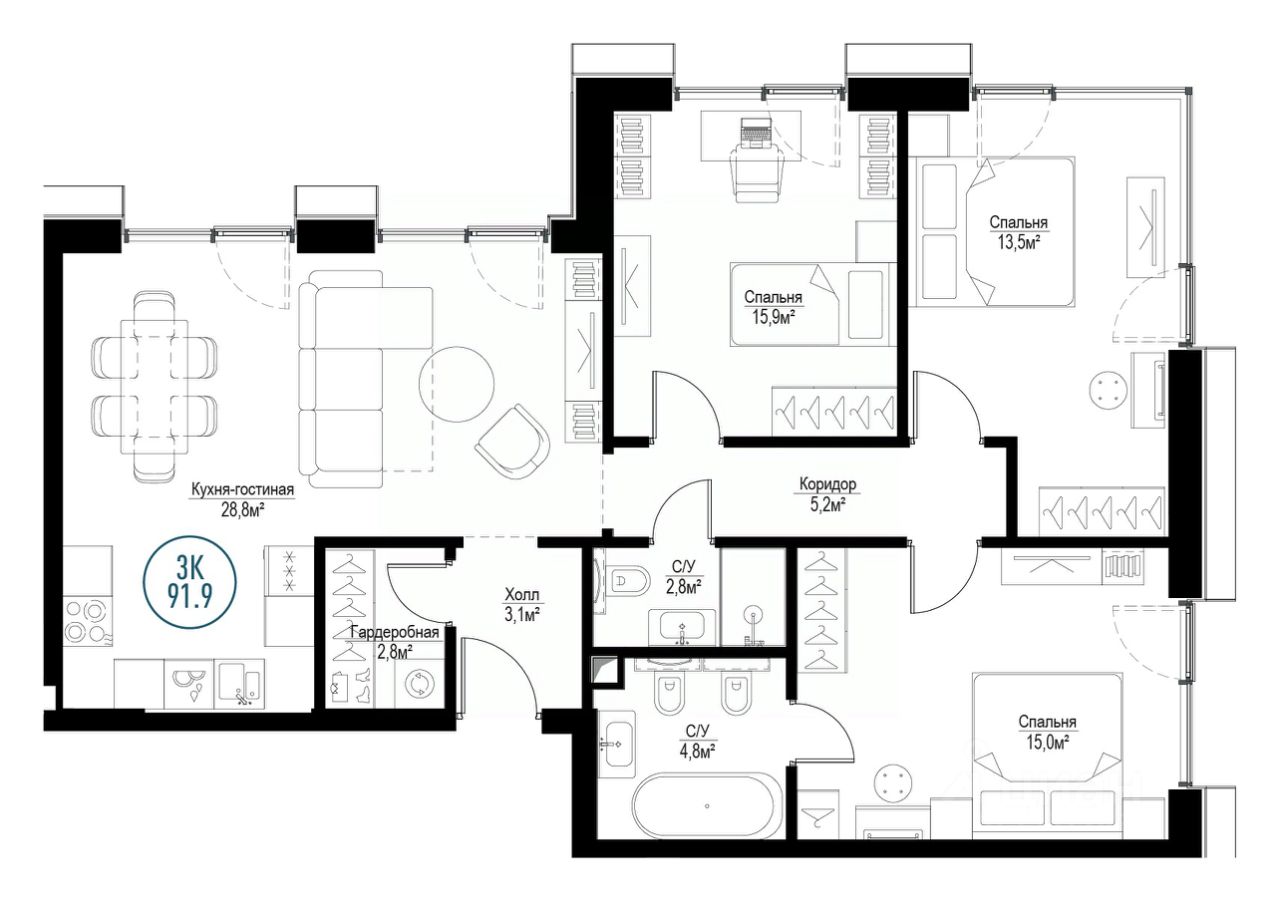Продаётся 3-комнатная квартира общей площадью 90.60 м², на 12 этаже.
