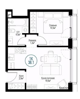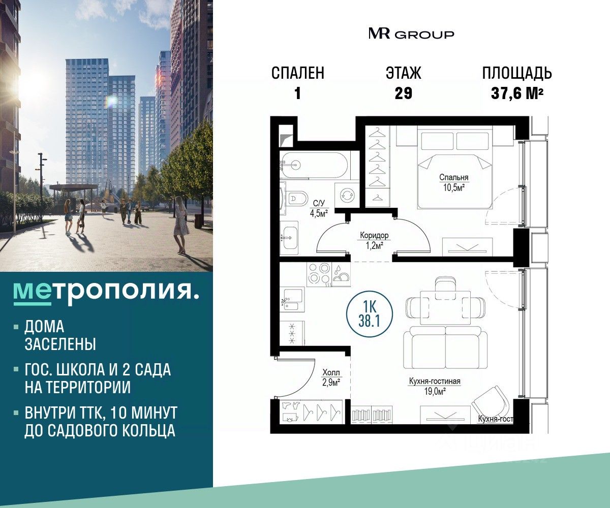 Продаётся 1-комнатная квартира общей площадью 37.60 м², на 29 этаже.