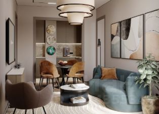 Продается 1-комнатная квартира общей площадью 44.37 м² с чистовой отделкой в ЖК Mod на 9-м этаже 9 этажного клубного дома.