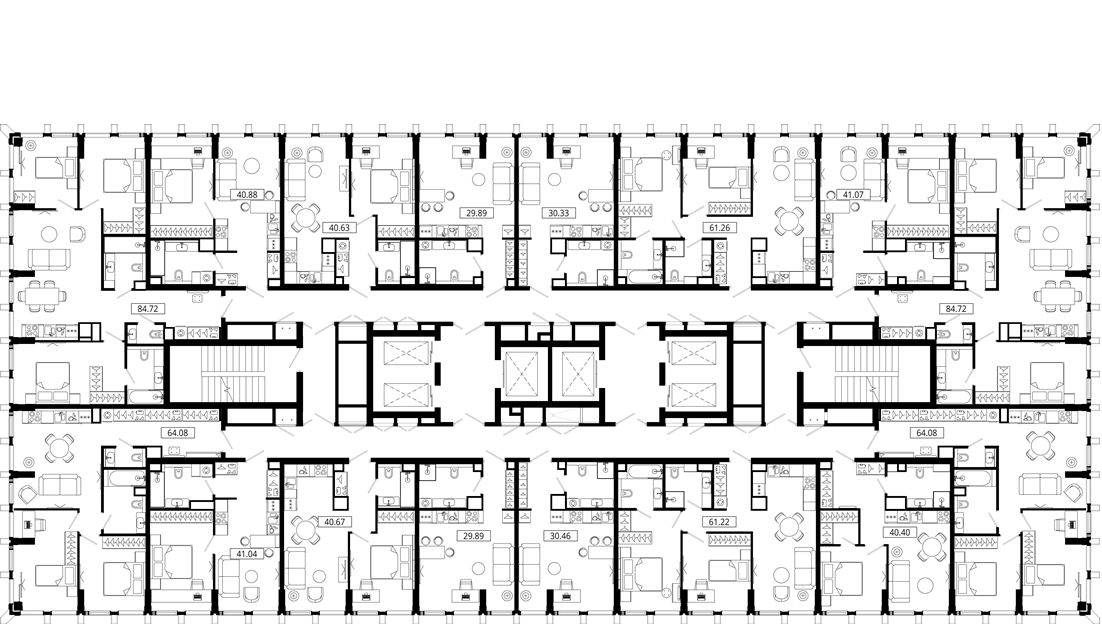 Продается 1-к квартира общей площадью 41.19 м² с предчистовой отделкой в ЖК премиум-класса Mod на 19-м этаже 44 этажного дома.