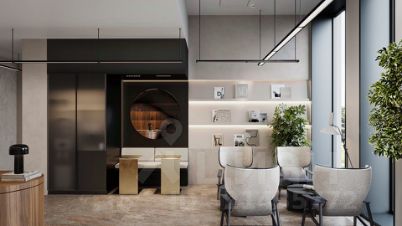 - Лобби по индивидуальному дизайн проекту от европейского бюро Вlank Architects: лаунж-зоны, ресепшен, колясочная, помещение для мытья лап животным после прогулки
