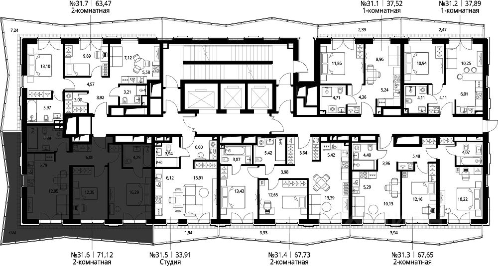 Продаётся 2-к квартира общей площадью 72.64 м² без отделки в ЖК "Селигер Сити" на 31-м этаже башни Лисицкого.