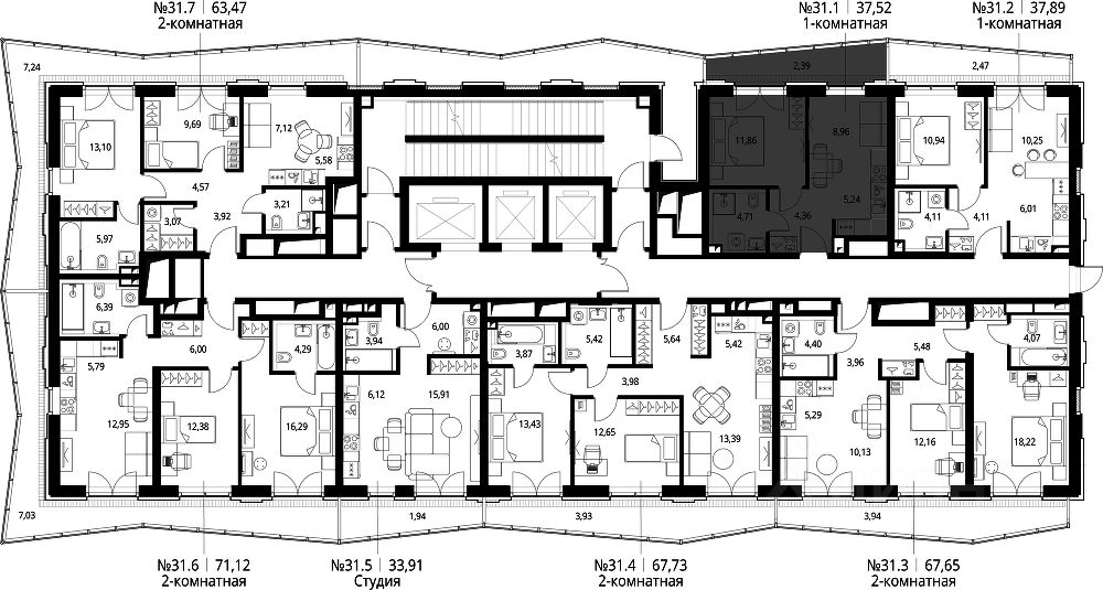 Продаётся 1-к квартира общей площадью 38.33 м² без отделки в ЖК "Селигер Сити" на 31-м этаже башни Лисицкого.