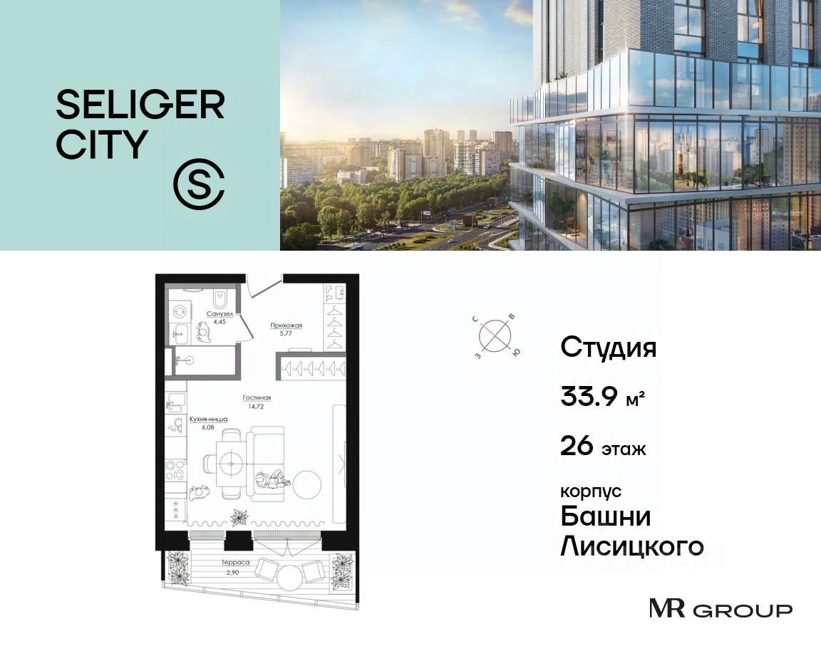 Продаётся студия общей площадью 34.63 м² с предчистовой отделкой в ЖК "Селигер Сити" на 26-м этаже башни Лисицкого.