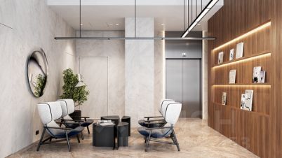 - Лобби по индивидуальному дизайн проекту от европейского бюро Вlank Architects: лаунж-зоны, ресепшен, колясочная, помещение для мытья лап животным после прогулки