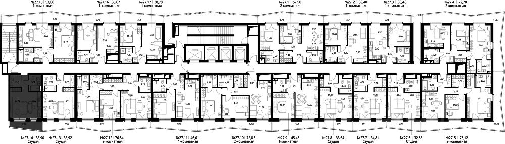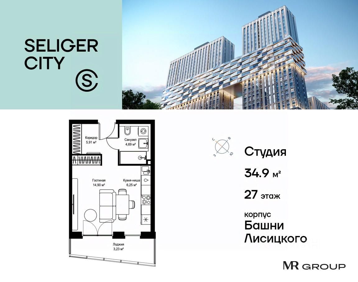 Продаётся студия общей площадью 34.98 м² без отделки в ЖК "Селигер Сити" на 27-м этаже башни Лисицкого.