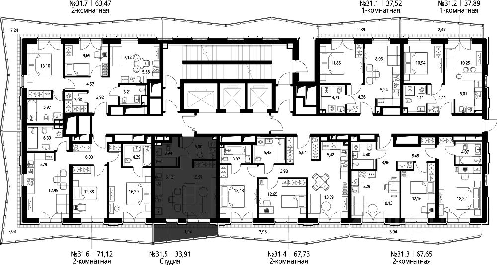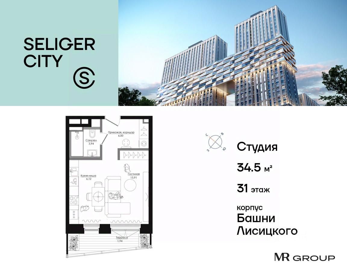 Продаётся студия общей площадью 34.57 м² без отделки в ЖК "Селигер Сити" на 31-м этаже башни Лисицкого.