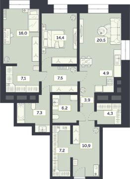 Продаётся 3-комнатная квартира в сданном доме (Староалексеевская, 5А (5а)), срок сдачи: I-кв. 2022, общей площадью 110.2 кв.м., на 5 этаже.