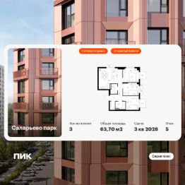Продаётся 3-комн. квартира площадью 63,7 кв.м на 5 этаже 14 этажного дома (Корпус 69.2, Секция 2) проекта ПИК Саларьево парк. Светлый просторный подъезд на уровне земли, функциональная планировка, большие окна, c отделкой.