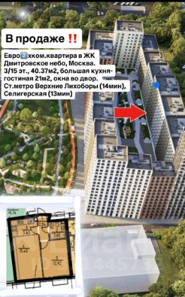 Продается просторная 1-ком. квартира с большой кухней-гостиной 21 м2 в ЖК Бизнес класса Дмитровское небо, в районе Западное Дергунино.