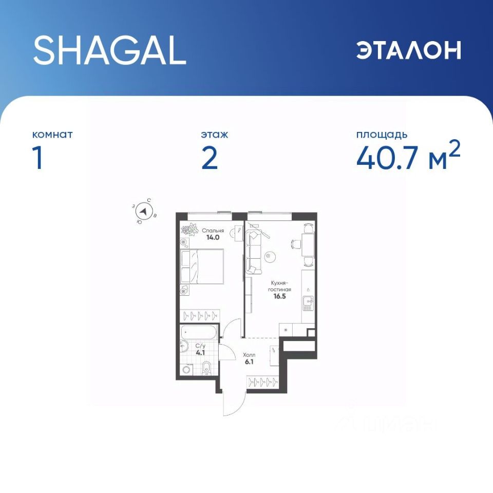 40,7 м²