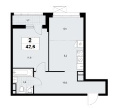 Продаётся 2-комнатная квартира в строящемся доме (Дом 2), срок сдачи: II-кв. 2026, общей площадью 42.6 кв.м., на 8 этаже. Новый жилой комплекс строится в уютной, экологически благополучной локации на юго-западе столицы. В ближайшем окружении - ухоженные малоэтажные посёлки и живописный Ульяновский лесопарк. Благодаря этому из окон откроются вдохновляющие виды, которые не исчезнут со временем за фасадами многоэтажек.