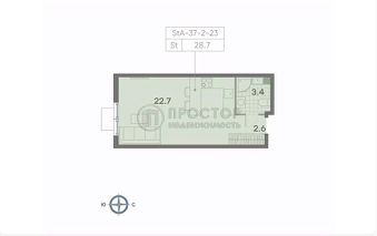 общей площадью 28.7 кв. метров на 16 этаже жилого квартала Парксайд. Возводится в районе Чертаново Центральное Южного административного округа Москвы. В 2 км от будущего комплекса находится станция метро "Пражская". Для автомобилистов есть удобные выезды на Варшавское шоссе и Чертановскую улицу.