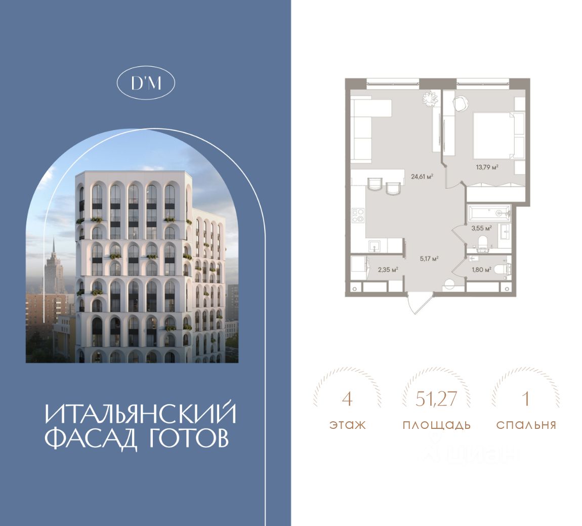 Продаются 2-комнатные апартаменты в строящемся доме (Корпус 1), срок сдачи: II-кв. 2026, общей площадью 51.27 кв.м., на 4 этаже. D`ORO MILLE - клубный апарт-комплекс премиум-класса в Дорогомилово. Его архитектура отсылает к величественным образцам древнеримского зодчества и в то же время, благодаря необыкновенной легкости, утонченности рисунка фасадов, устремлена в будущее. Весь его облик, все 14 этажей - это череда стройных воздушных арок, создающих ритмическую гармонию. И, если архитектура - это искусство, то клубный дом D`ORO MILLE, безусловно, произведение этого искусства, арт-объект. Причем не только снаружи: такую же высокую эстетическую планку держат внутри здания изысканные интерьеры общественных пространств, а на приватной территории комплекса - эффектный двор-сад.