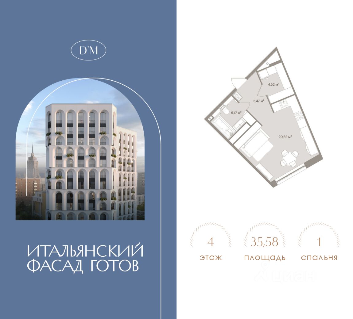 Продаются 1-комнатные апартаменты в строящемся доме (Корпус 1), срок сдачи: II-кв. 2026, общей площадью 35.58 кв.м., на 4 этаже. D`ORO MILLE - клубный апарт-комплекс премиум-класса в Дорогомилово. Его архитектура отсылает к величественным образцам древнеримского зодчества и в то же время, благодаря необыкновенной легкости, утонченности рисунка фасадов, устремлена в будущее. Весь его облик, все 14 этажей - это череда стройных воздушных арок, создающих ритмическую гармонию. И, если архитектура - это искусство, то клубный дом D`ORO MILLE, безусловно, произведение этого искусства, арт-объект. Причем не только снаружи: такую же высокую эстетическую планку держат внутри здания изысканные интерьеры общественных пространств, а на приватной территории комплекса - эффектный двор-сад.