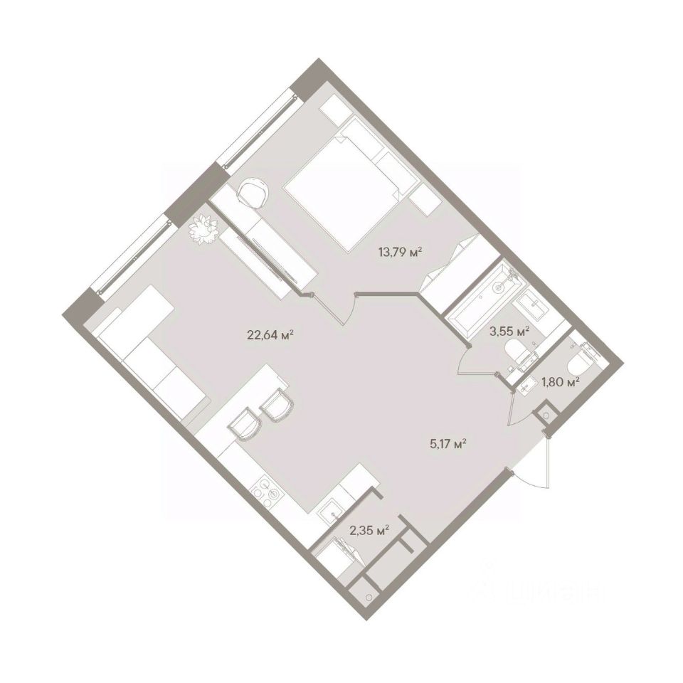 Жилая площадь13,8 м²