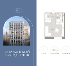Продаются 1-комнатные апартаменты в строящемся доме (Корпус 1), срок сдачи: II-кв. 2026, общей площадью 30.45 кв.м., на 4 этаже. D`ORO MILLE - клубный апарт-комплекс премиум-класса в Дорогомилово. Его архитектура отсылает к величественным образцам древнеримского зодчества и в то же время, благодаря необыкновенной легкости, утонченности рисунка фасадов, устремлена в будущее. Весь его облик, все 14 этажей - это череда стройных воздушных арок, создающих ритмическую гармонию. И, если архитектура - это искусство, то клубный дом D`ORO MILLE, безусловно, произведение этого искусства, арт-объект. Причем не только снаружи: такую же высокую эстетическую планку держат внутри здания изысканные интерьеры общественных пространств, а на приватной территории комплекса - эффектный двор-сад.