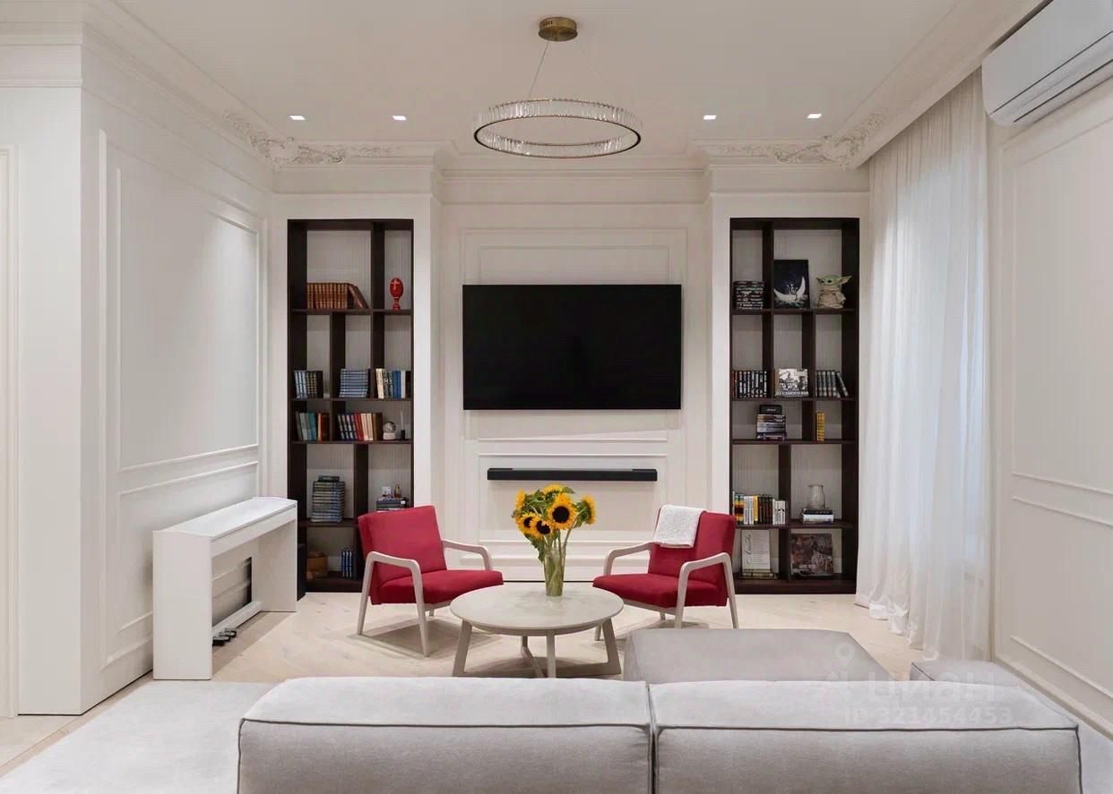 Квартира полностью готова к проживанию. Дизайнерское бюро выполнило проект в стиле неоклассики, который гармонично поддерживает архитектурный стиль самого дома. Лепнина, высокие потолки, дверные проемы и уникальные дизайнерские решения создают безупречное пространство для жизни и отдыха.