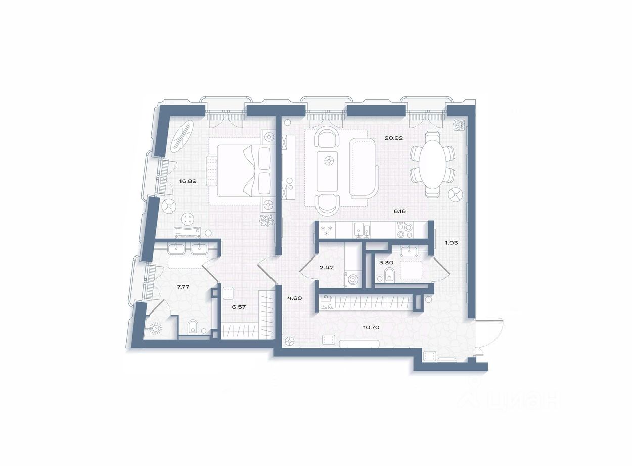 Продаётся 1-комнатная квартира общей площадью 81.26 м² без отделки на 6-м этаже в корпусе 1 проекта Дом Соболева.