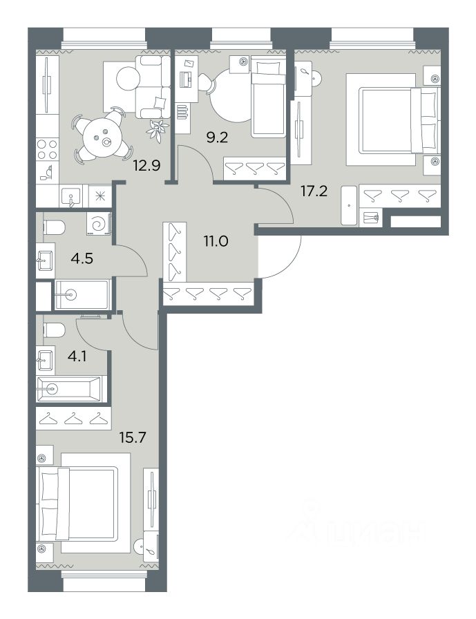 В проекте представлены квартиры на любой вкус и состав семьи: студии, классические и европланировки, 4- и 5-комнатные квартиры больше ста метров. Все помещения предлагаются без отделки.