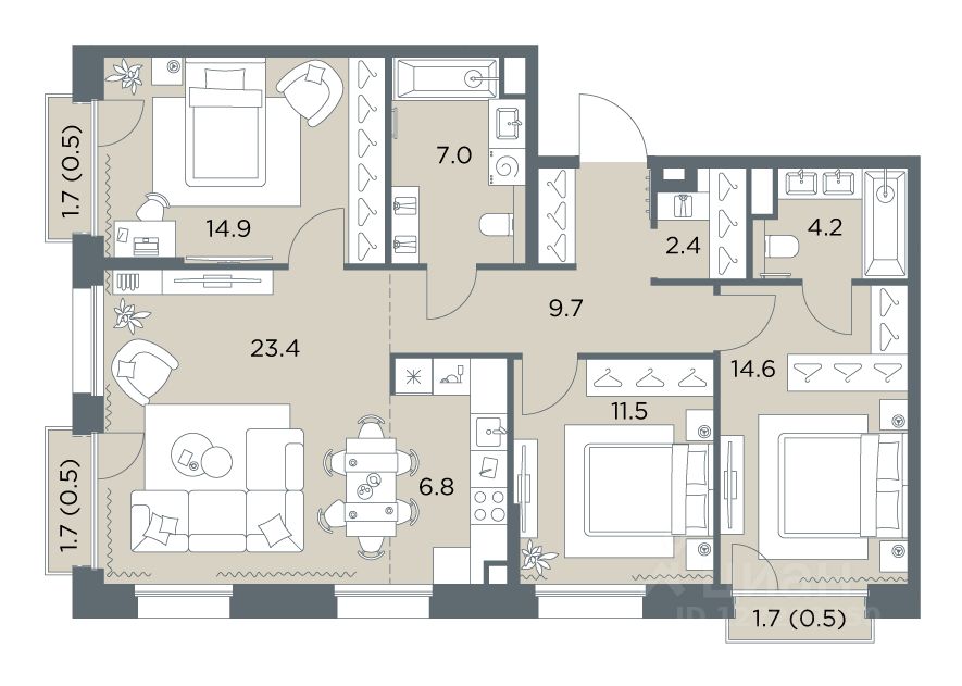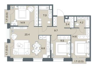 В проекте представлены квартиры на любой вкус и состав семьи: студии, классические и европланировки, 4- и 5-комнатные квартиры больше ста метров. Все помещения предлагаются без отделки.