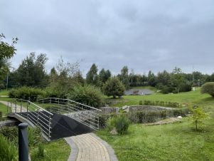 О поселке: на территории 18 га раскинулся большой парк с благоустроенной красивой территорией, разделяющий поселок таунхаусов от жилого комплекса. Выполнен стильный ландшафтный дизайн, с красивыми зонами отдыха и мостиками через речку. В парковой зоне предусмотрены детские и спортивные площадки, площадка для выгула собак, протекает река, где плавают утки, есть мангальная зона и японский сад с водопадом. На холме в парке в зимнее время года управляющая компания организовывает горки для катания детей на тюбингах. В летнее время работает ресторан и киоск с эскимо. В праздники УК устраивает различные активности для детей и взрослых. На территории поселка представлена обширная коммерческая инфраструктура (косметология, кофейня, детский сад, стоматология, клининговые услуги, школа вокала).