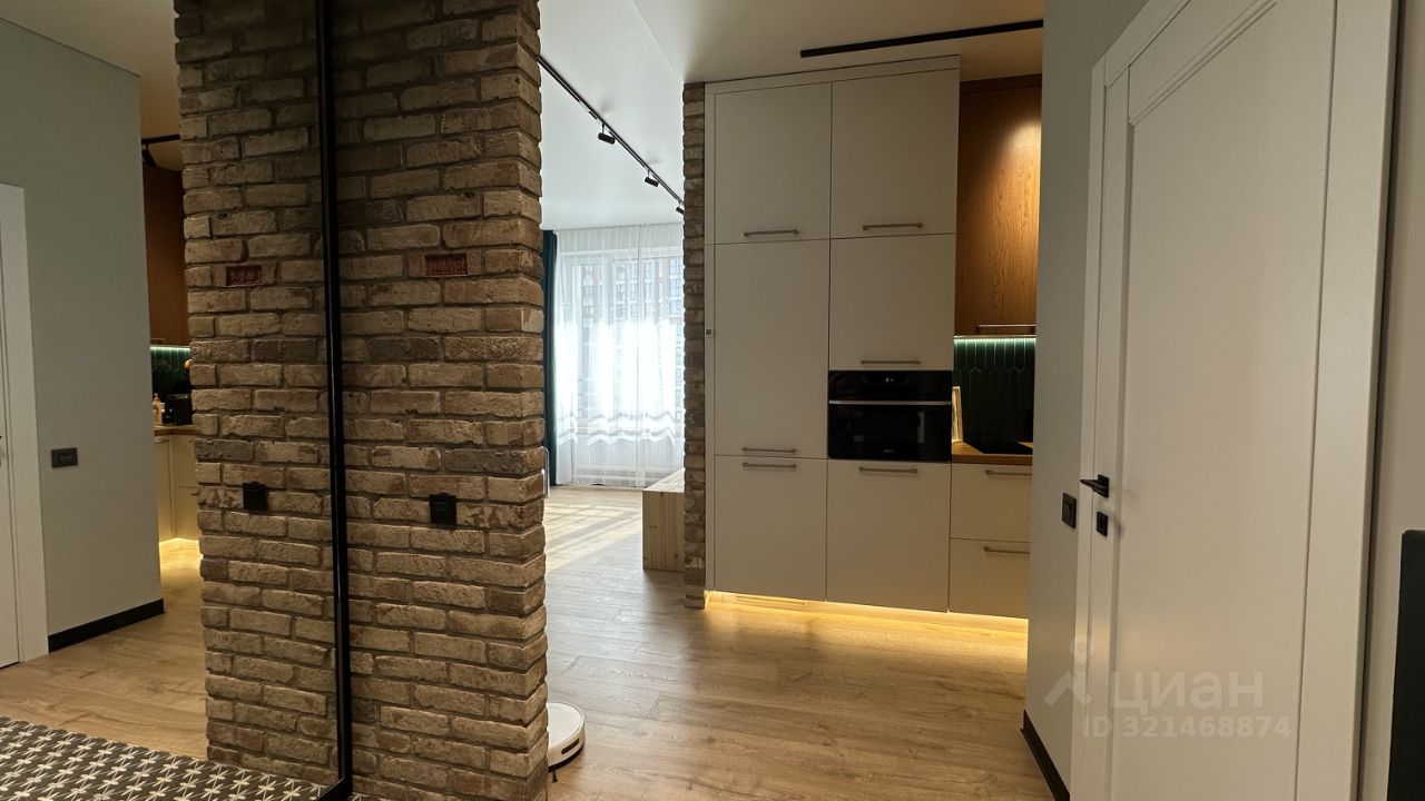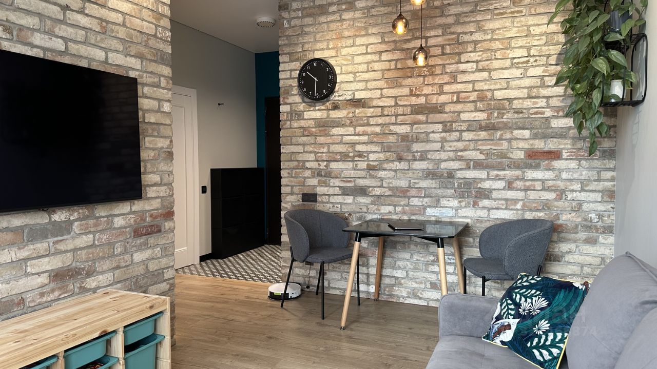 Изюминка квартиры - использованный в отделке стен винтажный и экологически чистый кирпич 19 века.