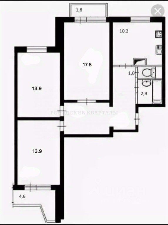 Три изолированные (!) комнаты с двумя застеклёнными лоджиями, окна выходят во двор. Раздельный санузел. Из преимуществ — большая кухня 10 кв.м. и отсутствие перепланировок. Квартира позволяет вам как сделать ремонт по собственному вкусу, воплощая все самые смелые дизайнерские решения в жизнь. так и сдавать её или заехать и жить сразу. Удобная и функциональная планировка даёт возможность увеличения ванной комнаты за счёт коридора. Указана площадь БЕЗ балкона и лоджии ( дополнительно 3м² ).