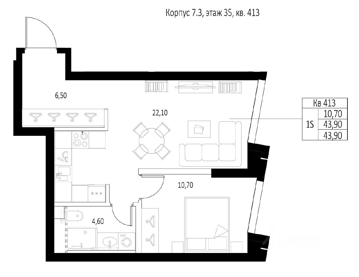 43,9 м²