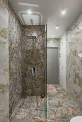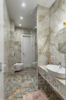 Санузлы: мраморная плитка, стильная сантехника