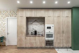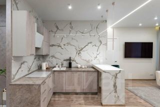 Кухня-гостиная: встроенный гарнитур, техника (посудомоечная машина, духовой шкаф, СВЧ)