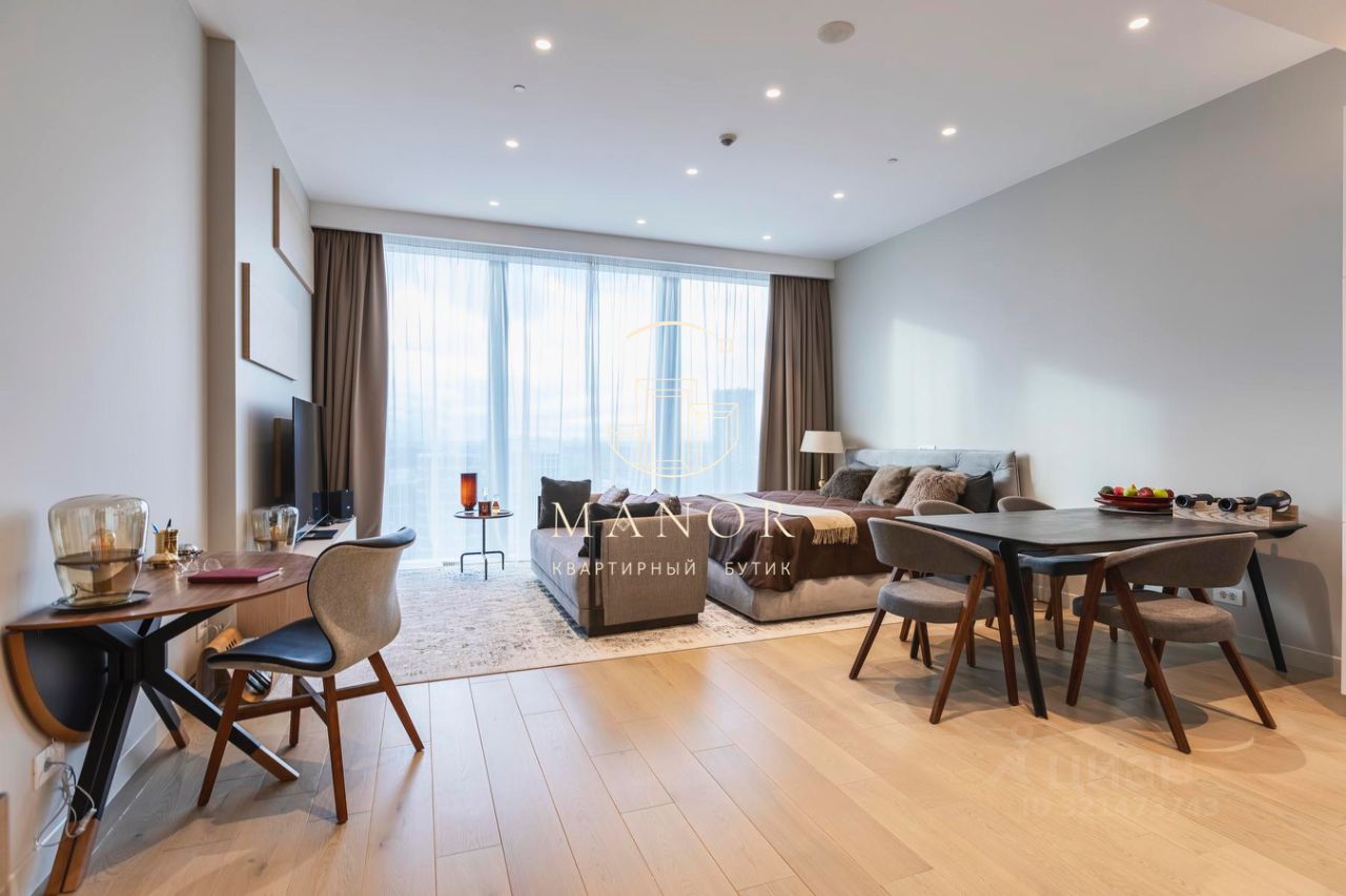 Высота и виды: Квартира расположена на 35 этаже и предлагает потрясающие панорамные виды на Москву.
