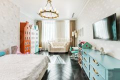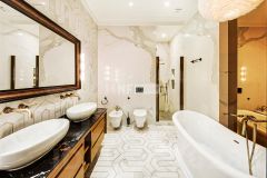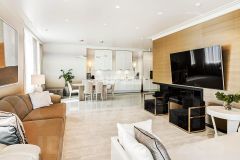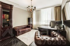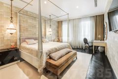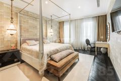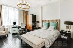 Лот: 23675. Эксклюзивно в продаже только у NF GROUP. Просторная полностью меблированная квартира с 5-ю спальнями в одном из уникальных жилых небоскребов на Мосфильмовской. Классический интерьер выполнен преимущественно в светлых кремовых тонах на контрасте с более темными элементами в отделке и мебелью. Сочетание различных текстур и высококачественных материалов делают дизайн интересным, но не перегружают его.