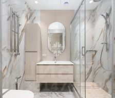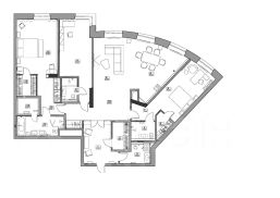 Гостиная-кухня-столовая, гостевой санузел, 3 спальни с гардеробными и ванными комнатами, постирочная.