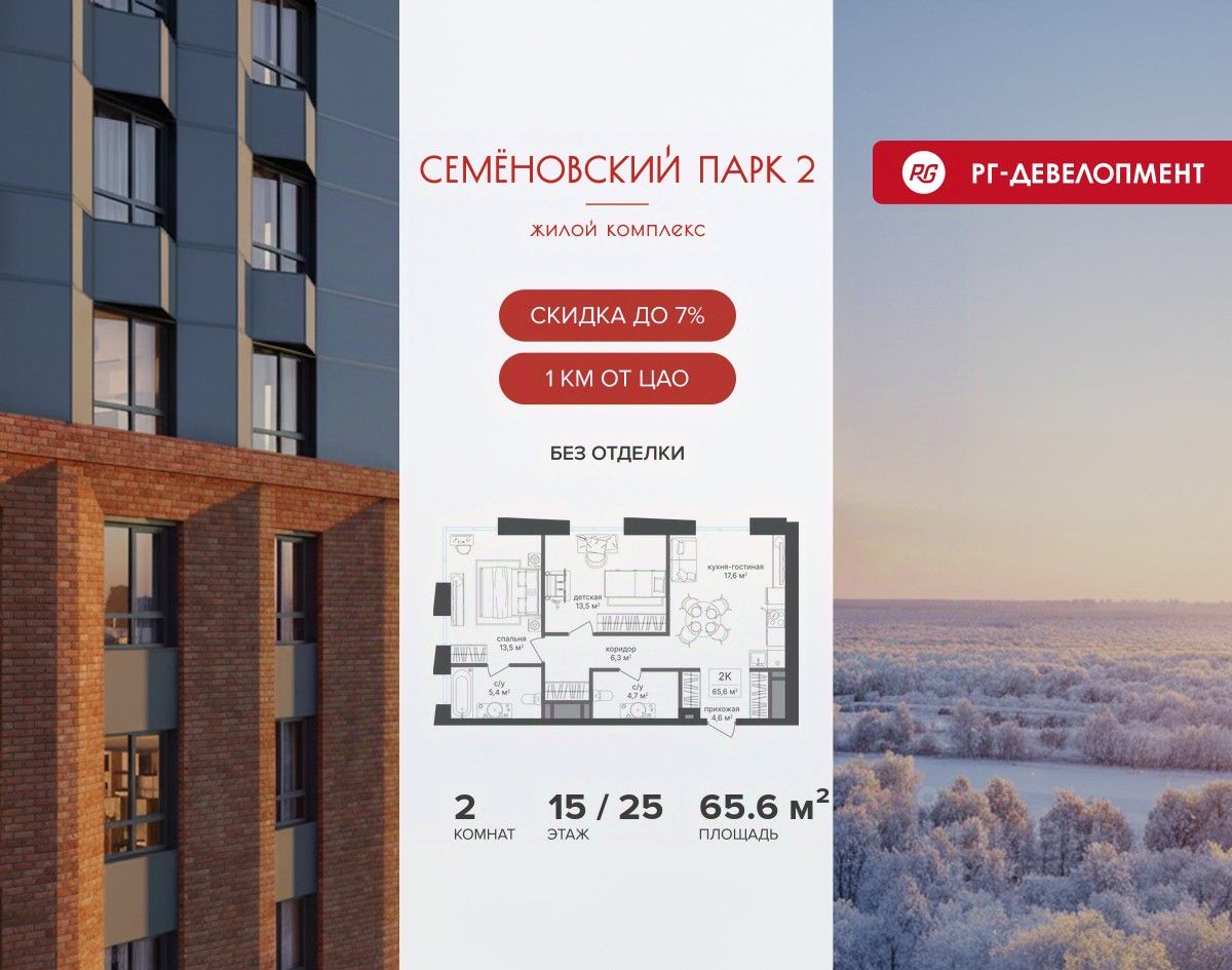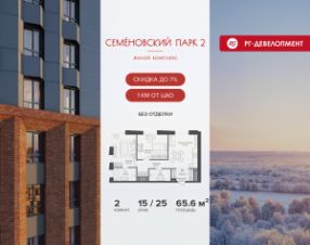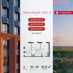 Продается 2-к квартира 65,6 кв.м. в ЖК "Семеновский парк 2" на 15-м этаже 25 этажного дома.