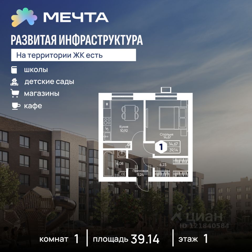 Продается однокомнатная квартира в квартале "Дружба" жилого комплекса "Мечта".