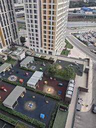 Просторный закрытый двор-стилобат со спортивными и детскими игровыми площадками.
