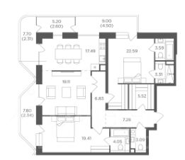 Квартира предлагается без ремонта, поэтому у вас есть уникальная возможность воплотить свои дизайнерские идеи в жизнь. Просторная кухня площадью 36 кв. м станет идеальным местом для семейных ужинов и встреч с друзьями. В квартире есть два совмещенных и два отдельных санузла, что делает проживание в ней особенно комфортным.