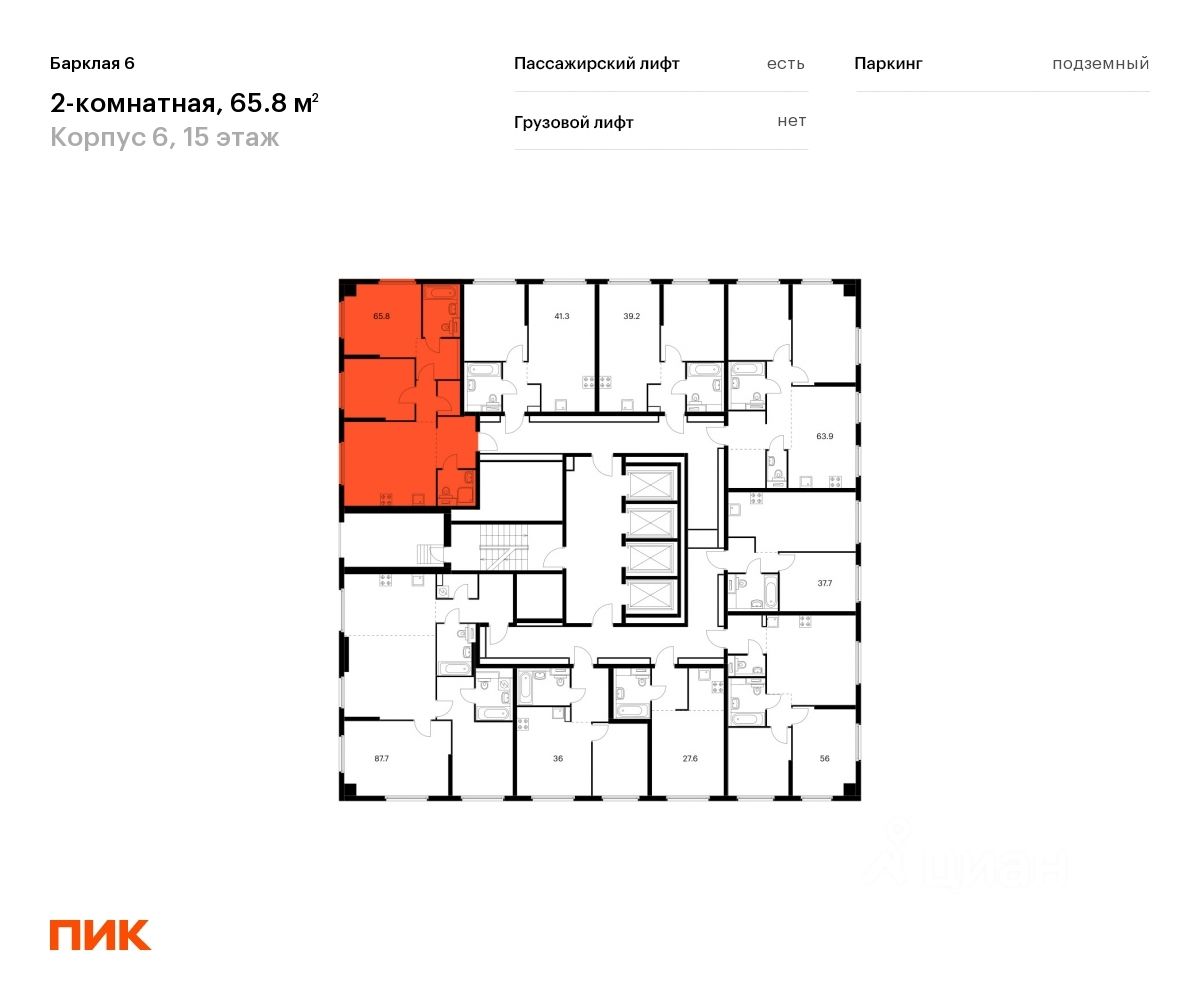 Продаётся 2-комн. квартира площадью 65,8 кв.м на 15 этаже 32 этажного дома (Корпус 6, Секция 1) проекта ПИК Барклая 6. Светлый просторный подъезд на уровне земли, функциональная планировка, большие окна, предчистовая отделка.