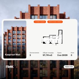 Новостройка! Продается 2-комн. кв-ра площадью 57,7 кв.м, (Корпус 3.4, Секция 4) 3 этаж 32-этажного дома в Квартал Мит от ПИК. "Квартал Мит" строится в экологически чистом районе Митино, где по соседству расположен большой лесопарк, а с двух сторон протекают реки Сходня и Журавка. Для семей с детьми здесь появится школа и два детских сада.